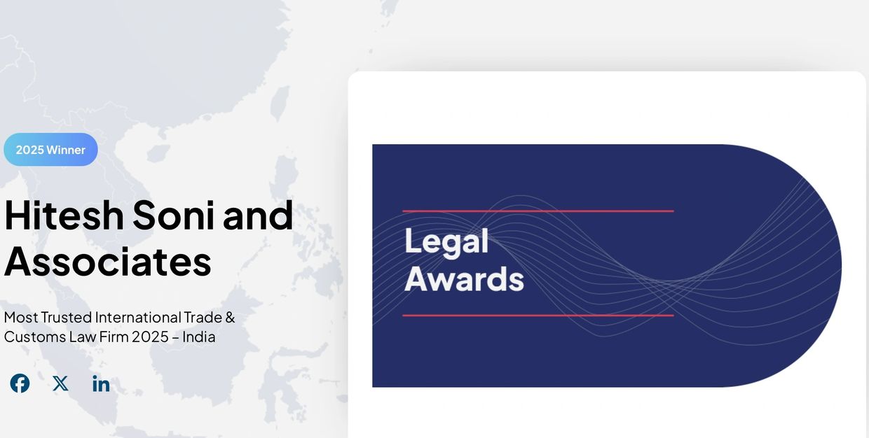 Our law firm Hitesh Soni & Associates has declared as winner of 2025 legal awards under category of ‘Most Trusted International Trade & Customs Law Firm 2025 – India‘ hosted by the APAC Insider in their Legal Awards 2025.