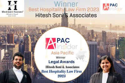We are honored to receive the prestigious award for ‘Best Hospitality Law Firm 2023’ in India, as recognized at the illustrious APAC Law Insider Asia Pacific Legal Awards 2023. We are absolutely delighted and overjoyed to be bestowed with this esteemed recognition from a highly esteemed organization. In addition, we are thrilled to present our heartfelt gratitude to our esteemed clients for their exceptional support. We are honored to receive your trust and confidence, which has propelled our firm to new heights of excellence and achievement. The prestigious accolades bestowed upon us are a testament to the unparalleled commitment and exceptional proficiency exhibited by our esteemed legal team. Each and every member of our esteemed team has been instrumental in upholding our firm's unwavering dedication to excellence, setting new standards in the realm of legal advice and representation. Their passion, professionalism, and diligence are truly deserving of commendation.