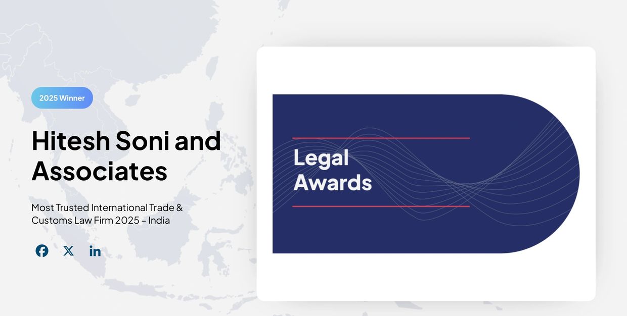 Our law firm Hitesh Soni & Associates has declared as winner of 2025 legal awards under category of ‘Most Trusted International Trade & Customs Law Firm 2025 – India‘ hosted by the APAC Insider in their Legal Awards 2025.